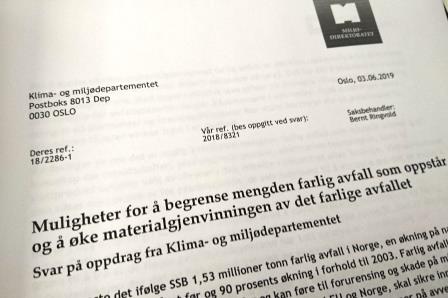 Miljødirektoratets brev blir nå også et viktig innspill til det ekspertutvalget for farlig avfall som er nedsatt, og som skal avgi sin innstilling innen 1. november.