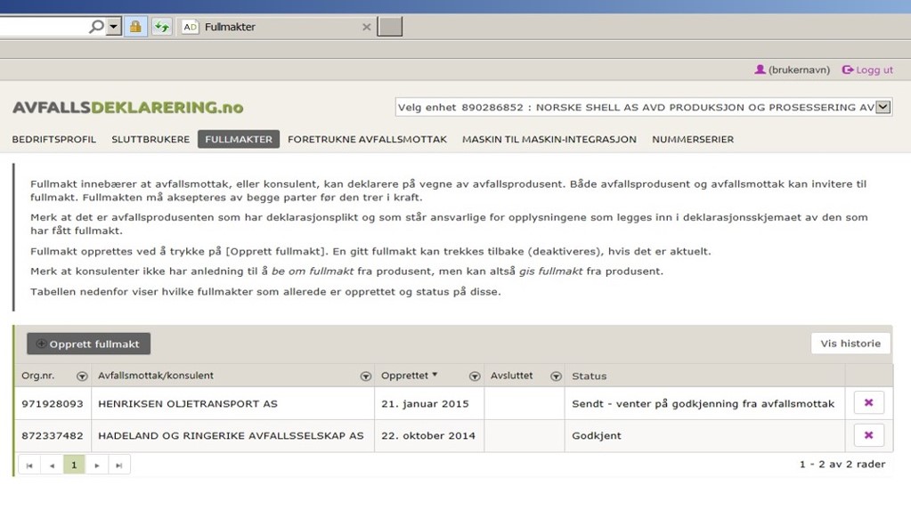 «Mottaker får inn samledeklarasjonen i sin oversikt over innkommende deklarasjoner. Samledeklarasjoner vil ha egen nummerserie og egen farge. De underliggende deklarasjonene vil framgå av en liste/tabell når man klikker på samledeklarasjonen. I tillegg til deklarasjonsnummer vil tabellen også inneholde annen informasjon, som f.eks. avfallsstoffnummer med beskrivelse, EAL kode med beskrivelse og mengde, men ikke informasjon om produsenten. Mottaker skal ikke kunne åpne de enkelte deklarasjonene ved å klikke på dem.»