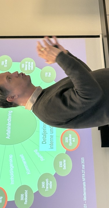 Marianne Wiker Stensland fra Oslo kommune Renovasjons- og gjenvinningsetaten redegjorde på interessant måte om utfordringer knyttet til midlertidig lagring av gass- / trykkbeholdere. Interessant og nyttig var også Håvard Nateland (SAR) sin statusorientering fra arbeidet med Norsk Standard 9431 - Standard for klassifisering av avfall (inkl. gasser).